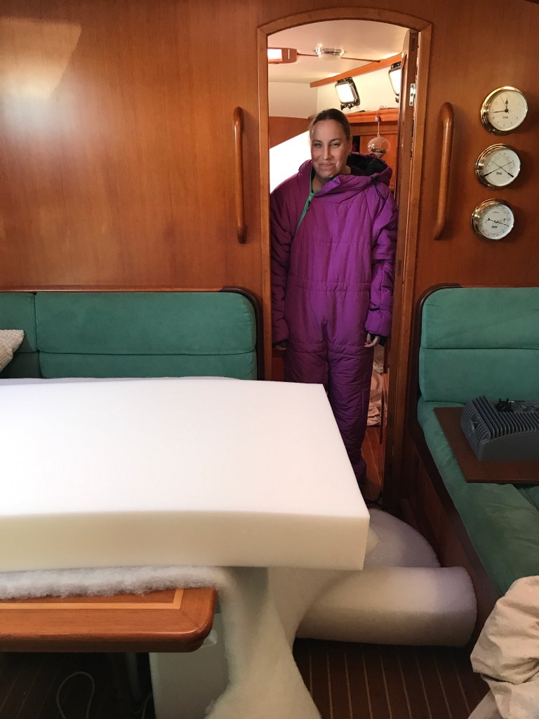 Some of the other big quality of life projects we completed were: customizing a Purple Mattress to fit our birth, redoing the cushions in the saloon seating, mounting our grill on the aft railing (I need my grilled foods), and installing a new stove so I can cook more often. Cooking on our old stove was like dicing with death as it gimbaled uncontrollably, had to be lit with a match, required hotwiring to light the oven, and had mounts well on their way to breaking in half. Not really that great for a blind person or a seer.